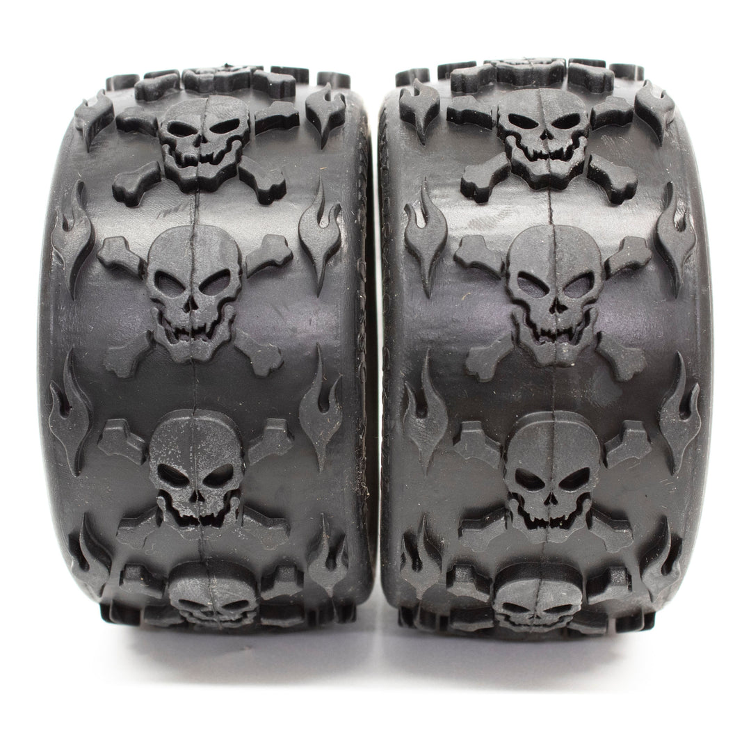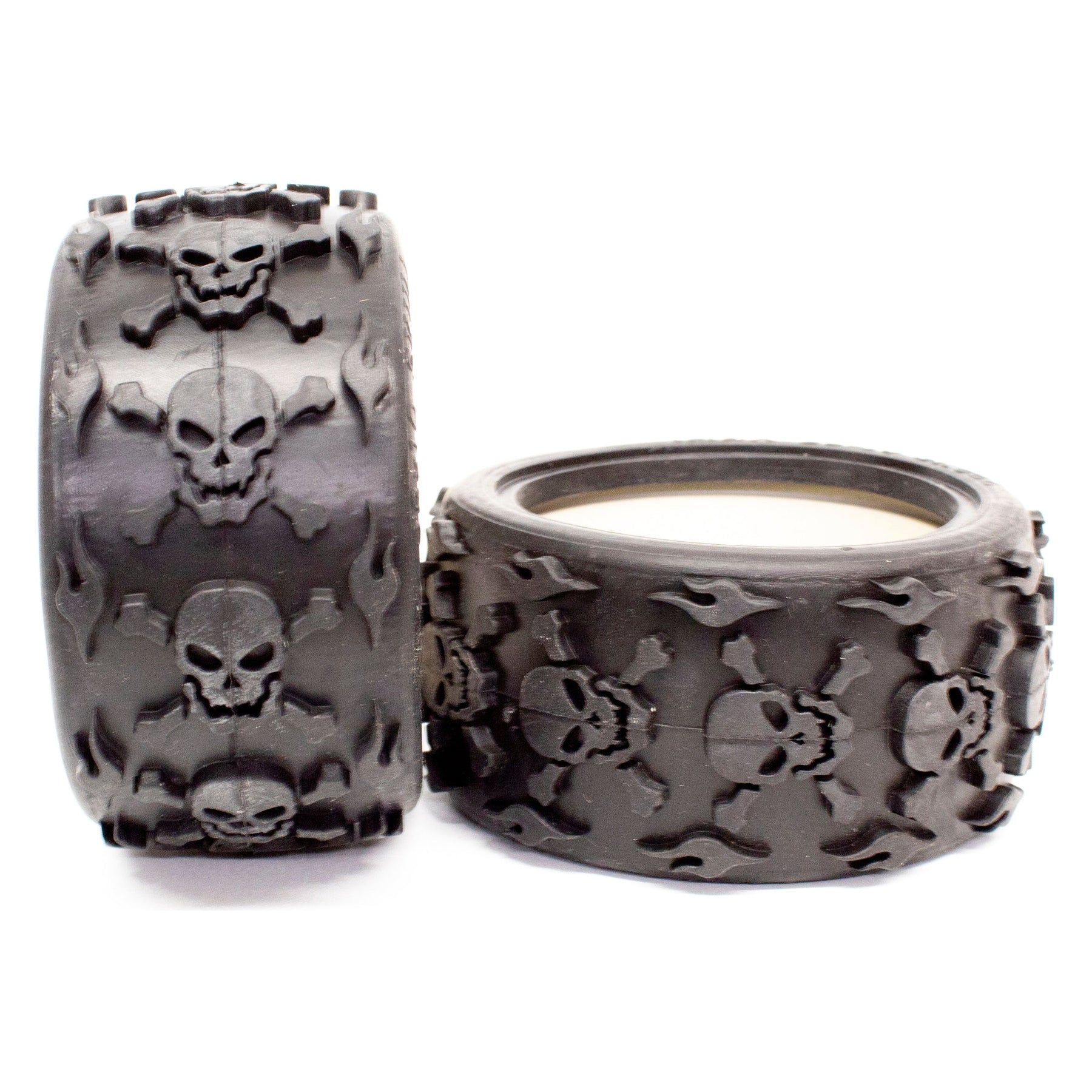 This listing is for a pair of our IMEX 2.8 Skull N Bones tires. These 2.8 buggy style top load bead type tires are great for the track and have tons of grip.