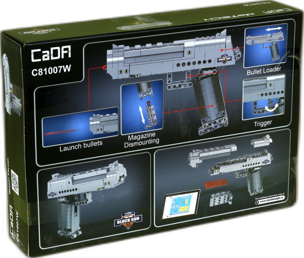 This pistol enables stimulating assembly and interactive play. Detailed features like a detachable magazine, bullet loading, and realistic trigger are included. The set also includes 6 rounds and a professional-grade instruction manual with full-color illustrations. Contains 307 pieces.