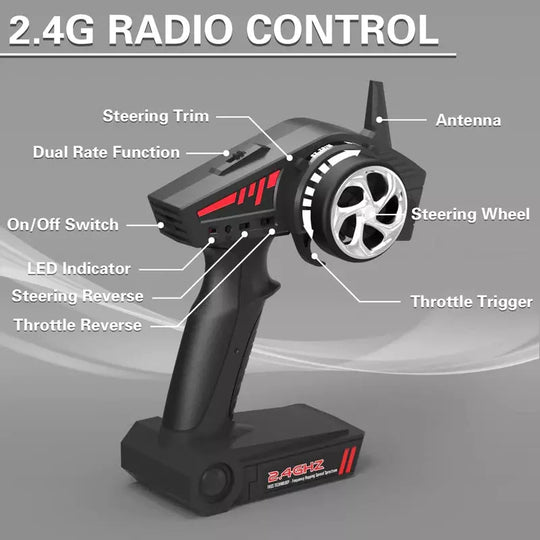 2.4GHz Control System: Stable, long-range signal with interference-free racing