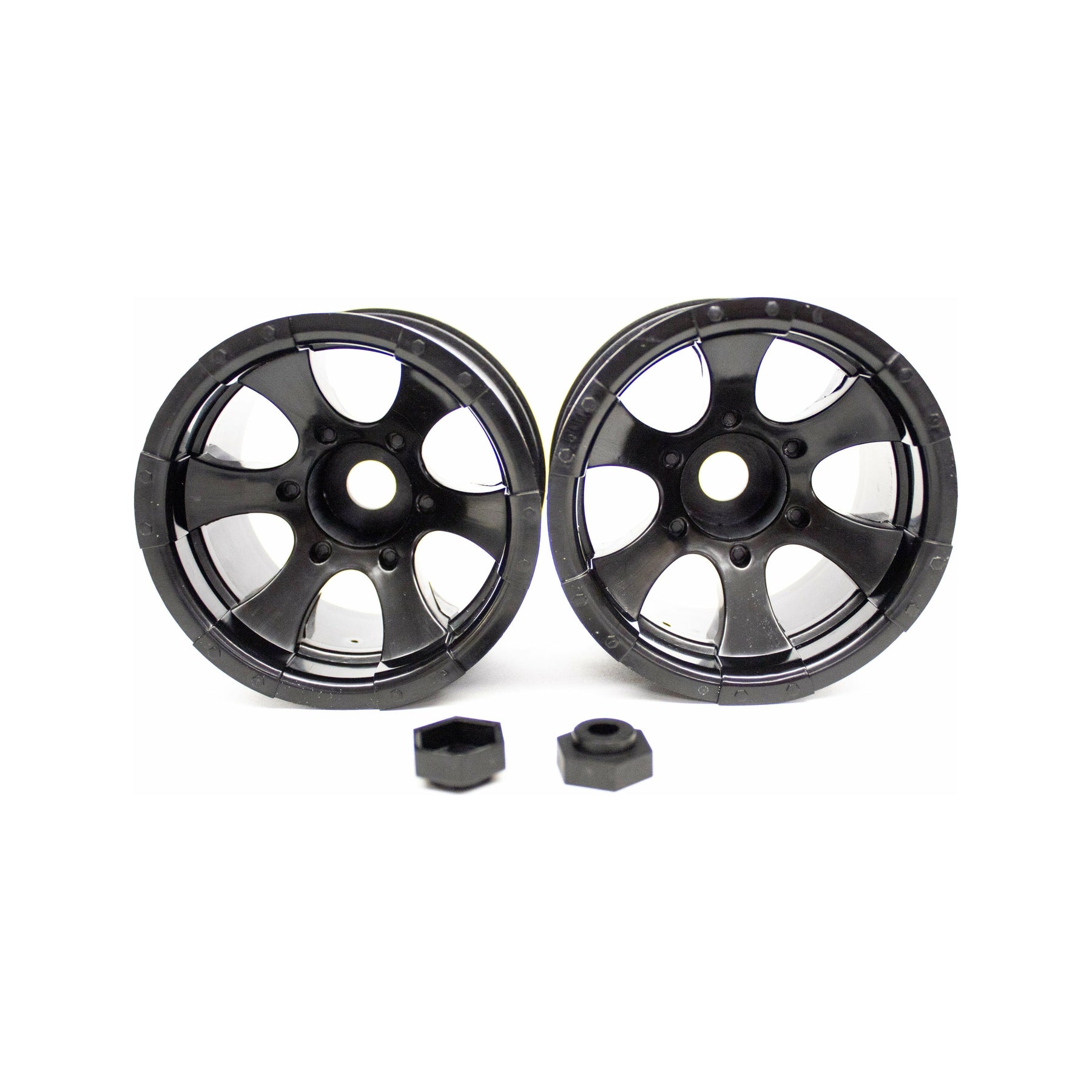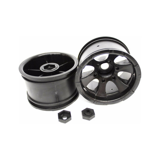 A set (x4) of 3.2" top load Eagle rims. These rims are native 17mm hex but come with an adapter to run a 14mm hex. These rims are very durable and were made to fit the 3.2 IMEX tires but do fit other common 3.2 style tires. Please check the dimensions and specs below to make sure yours fit before ordering if you are not matching them with the IMEX 3.2 tires.