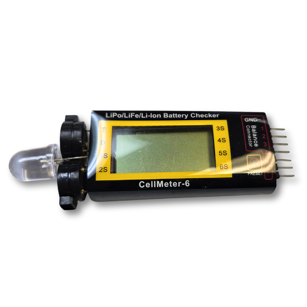 CellMeter-6 Battery Checker with Low Voltage Alarm — LiPo/LiFe/Li-Ion (1–6S)