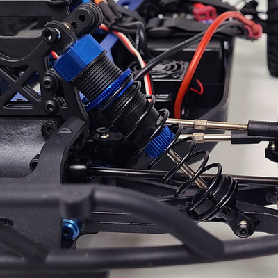 Oil-filled shocks absorb hard landings and rough terrain. Keeps the chassis stable and planted through bumps and jumps.