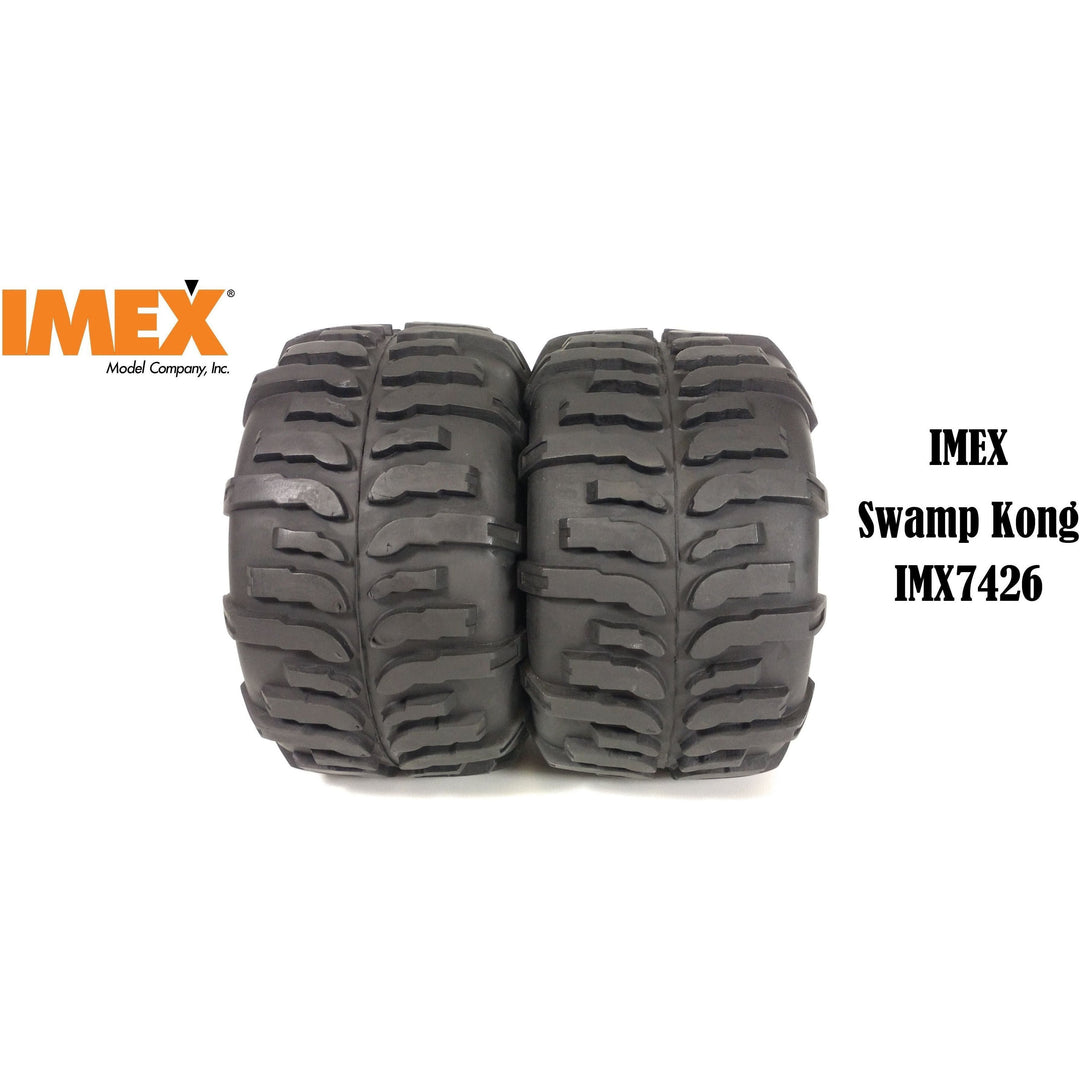 The Swamp Kong tires are some of the largest RC tires you can get for a RC truck coming in at 8.5" tall and 4.9" wide. These tires have been in production for well over a decade and were even used on military bomb searching robots! These tires are made of all natural rubber and have much more traction and durability compared to similar synthetic rubber compounds used today of the same hardness.